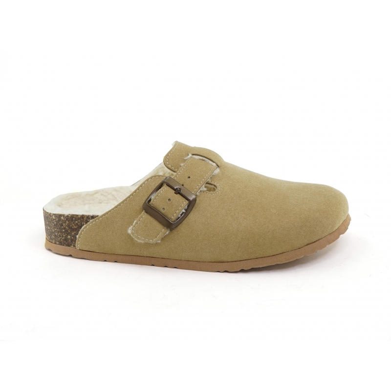 Beige vegane pelzige Winterpantoffeln