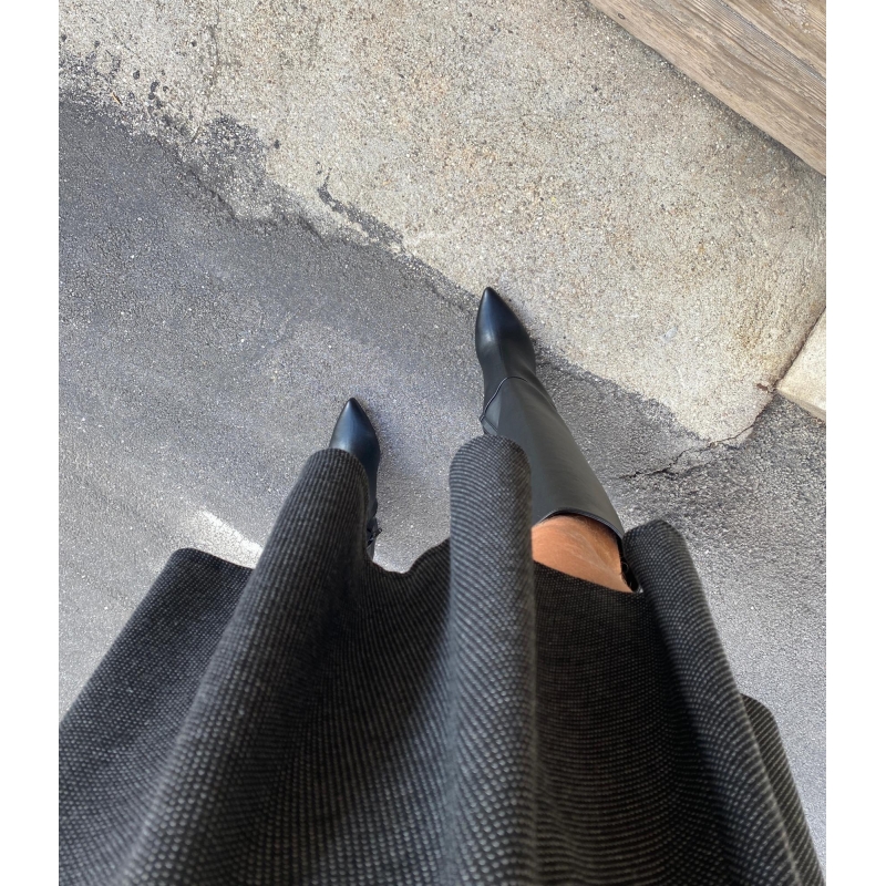 Spitzer schwarzer schlauchförmiger veganer Stiefel