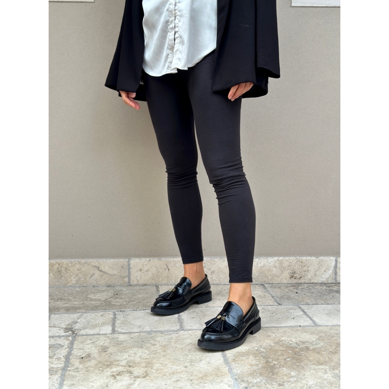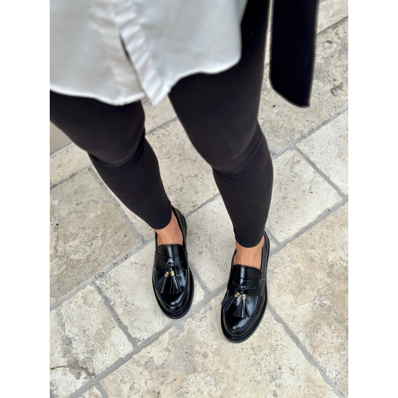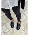 Glänzender schwarzer veganer Mokassin