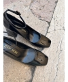 Modell mit Knöchelriemen und quadratischer Spitze