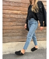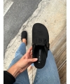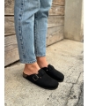 Schwarze vegane pelzige Winterhausschuhe