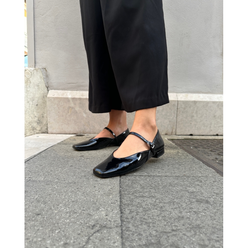 Schwarze glänzende Ballerinas mit quadratischer Spitze
