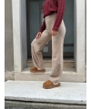 Vegane kamelfarbene Winterpantoletten mit Kunstpelzfutter und Plateau