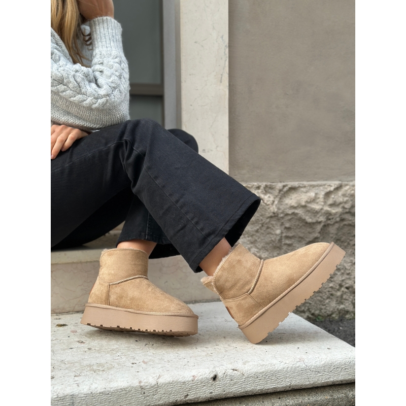 Beigefarbene klobige Plüschstiefeletten mit Kunstfellpolsterung