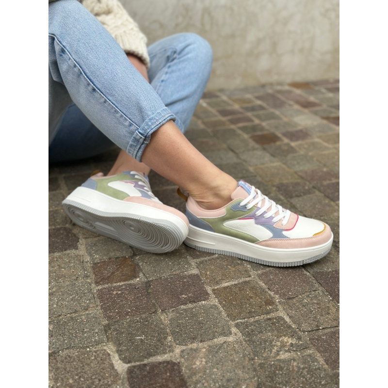 Damen-Plateauschuhe in Pastelltönen mit Baumwollschnürsenkeln