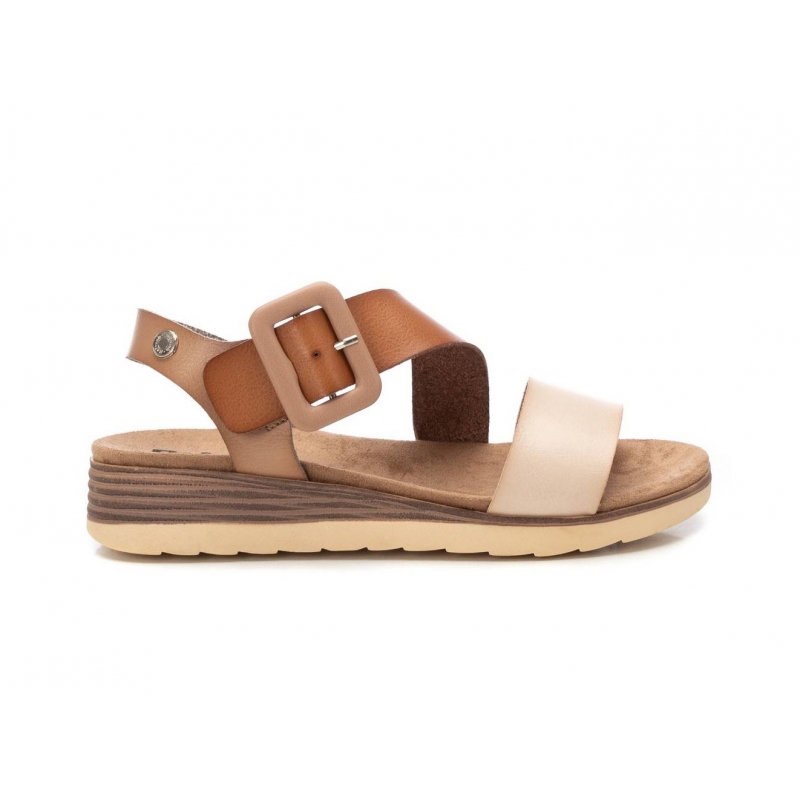 Zweifarbige Sommerschuhe in Brauntönen, mit Bändern und quadratischem Schnallendetail