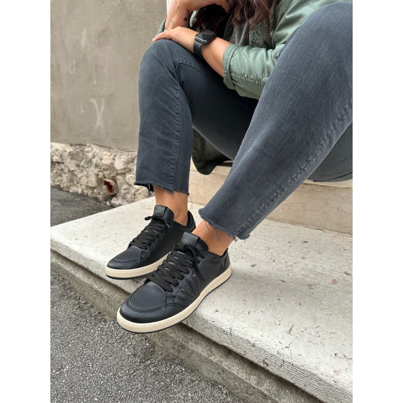 Umweltfreundliche schwarze Damen-Sneaker mit beiger Sohle
