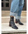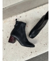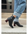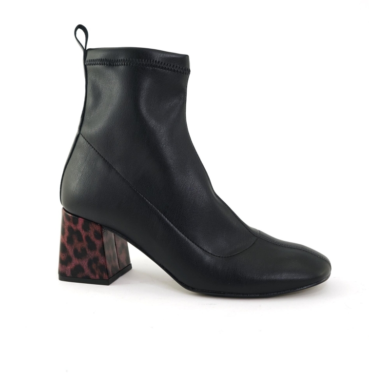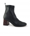 Stiefeletten mit glänzendem Blockabsatz im kontrastierenden Animalprint