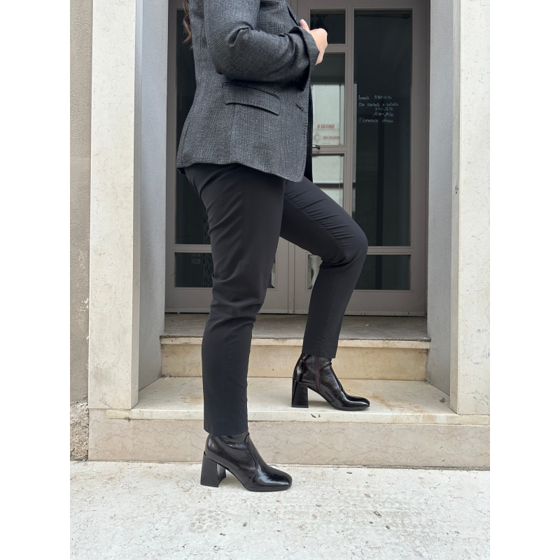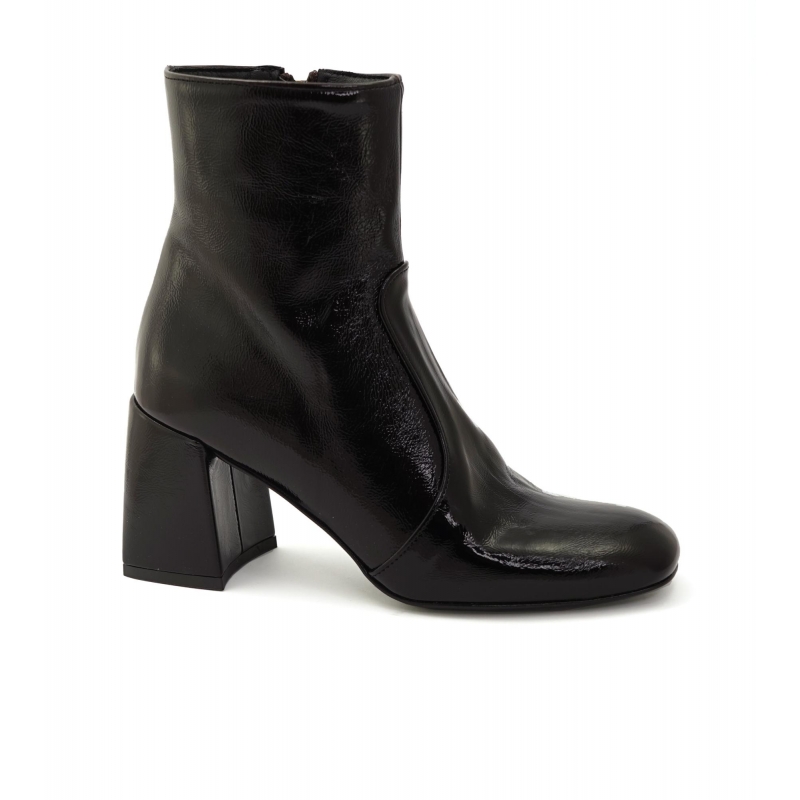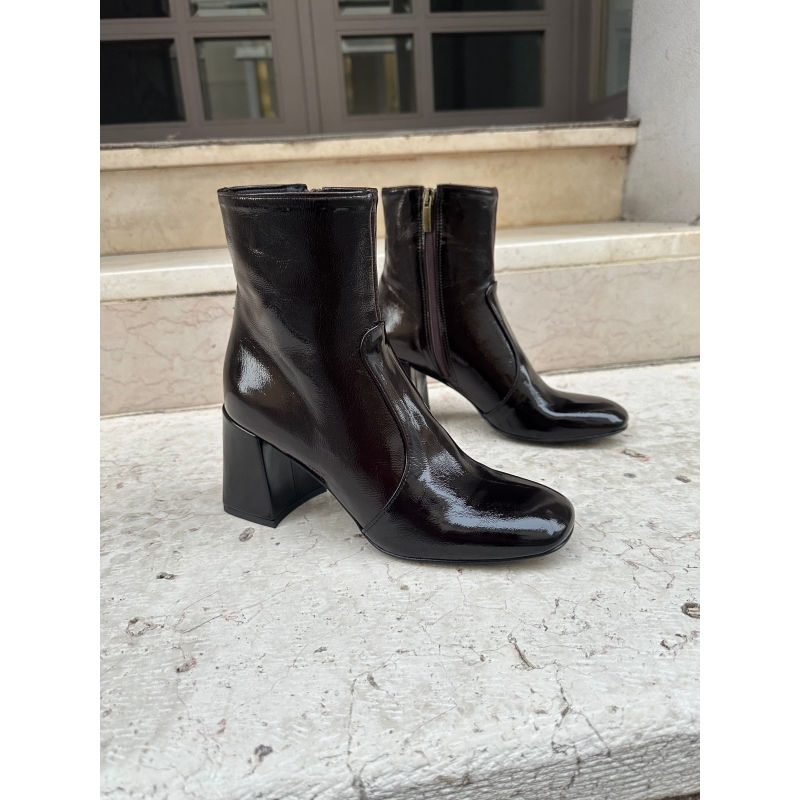 Lackleder-Stiefeletten mit quadratischer Spitze