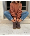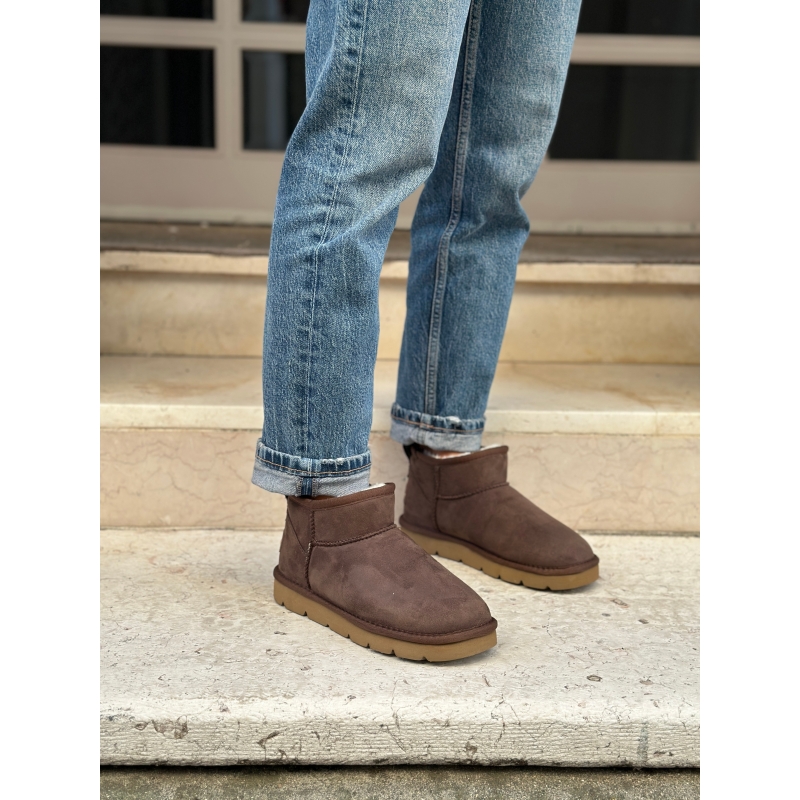 Dunkelbraune Plüschstiefeletten mit Kunstfellpolsterung