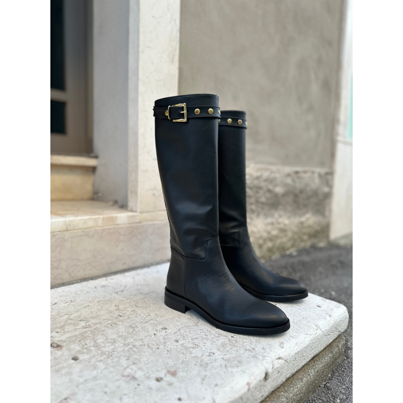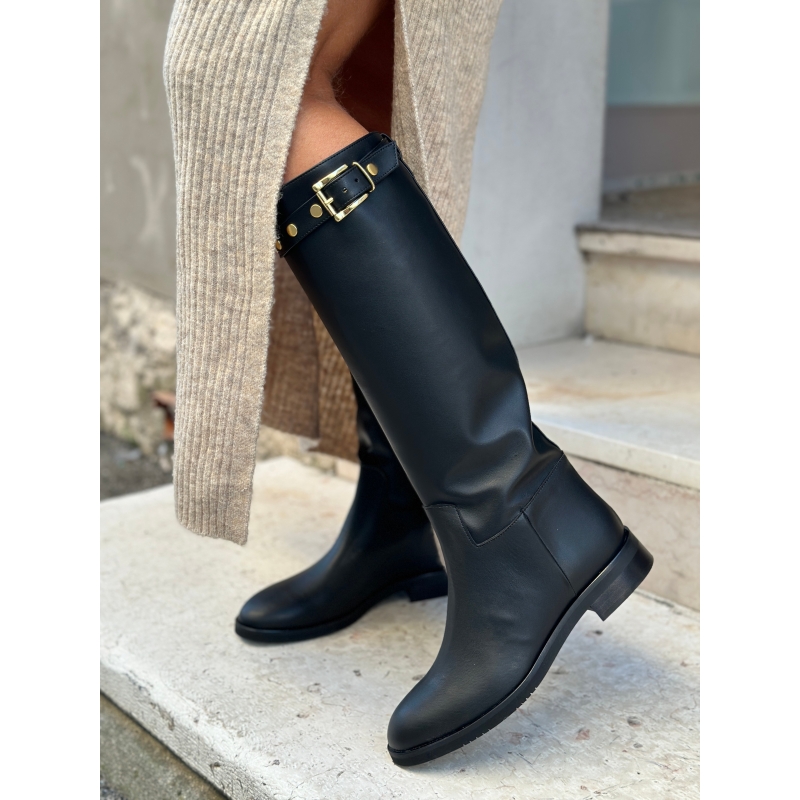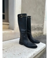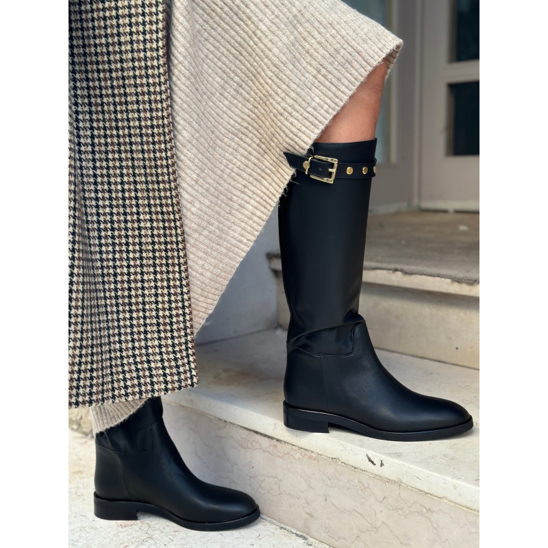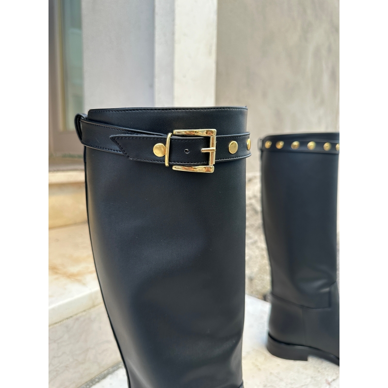 Schwarze, hohe vegane Damenstiefel im Reitstil
