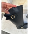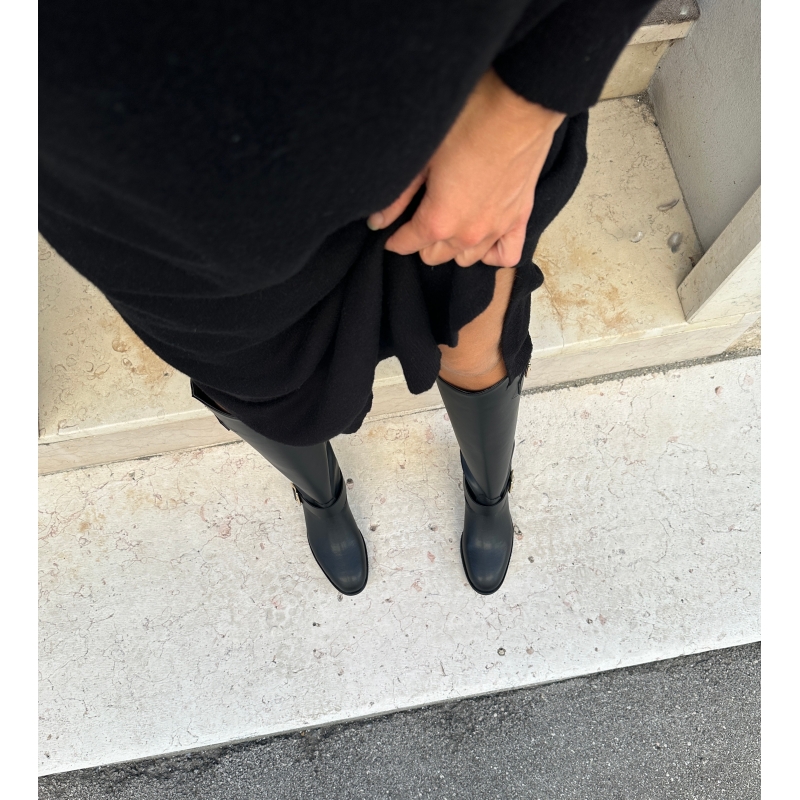 Schwarze, hohe vegane Damenstiefel im Reitstil