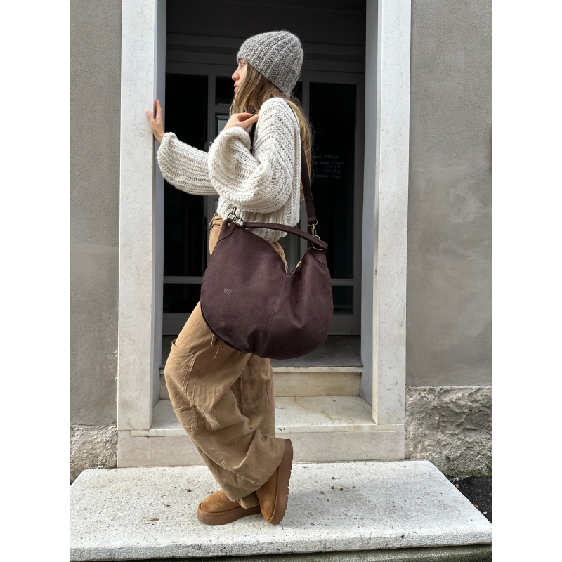 Vegane Schulter- und Handtasche in Dunkelbraun