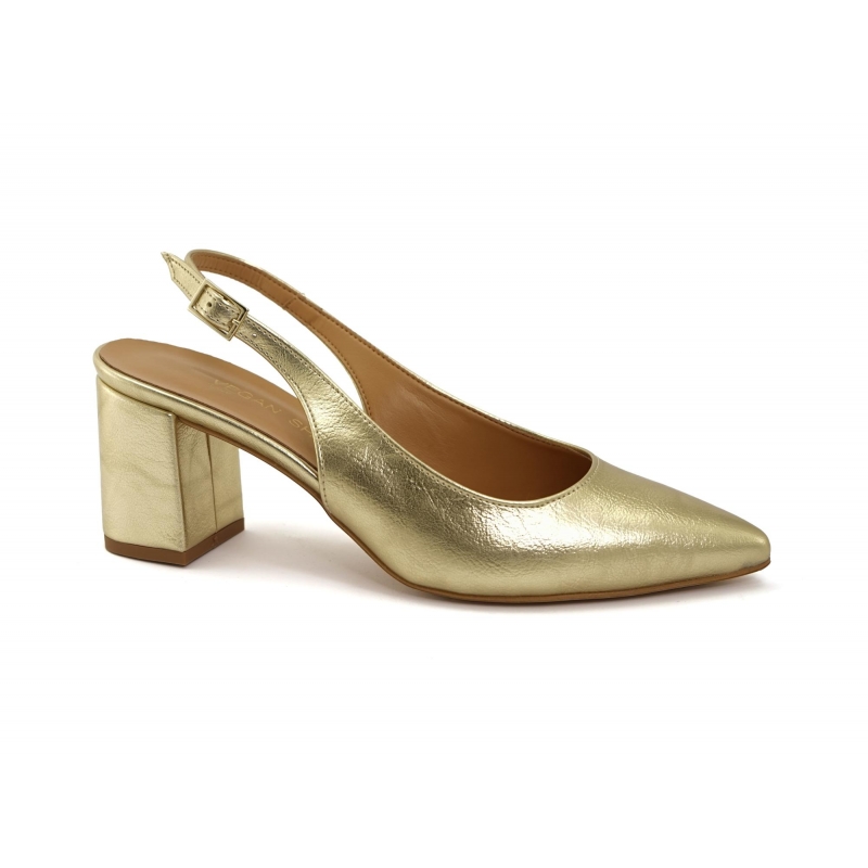 Elegante vegane Slingbacks aus Platin mit geschlossener Spitze