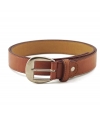 Umweltfreundlicher, ledergefärbter Gürtel mit abgerundeter silberner Schnalle