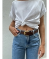 Umweltfreundlicher, ledergefärbter Gürtel mit abgerundeter Goldschnalle
