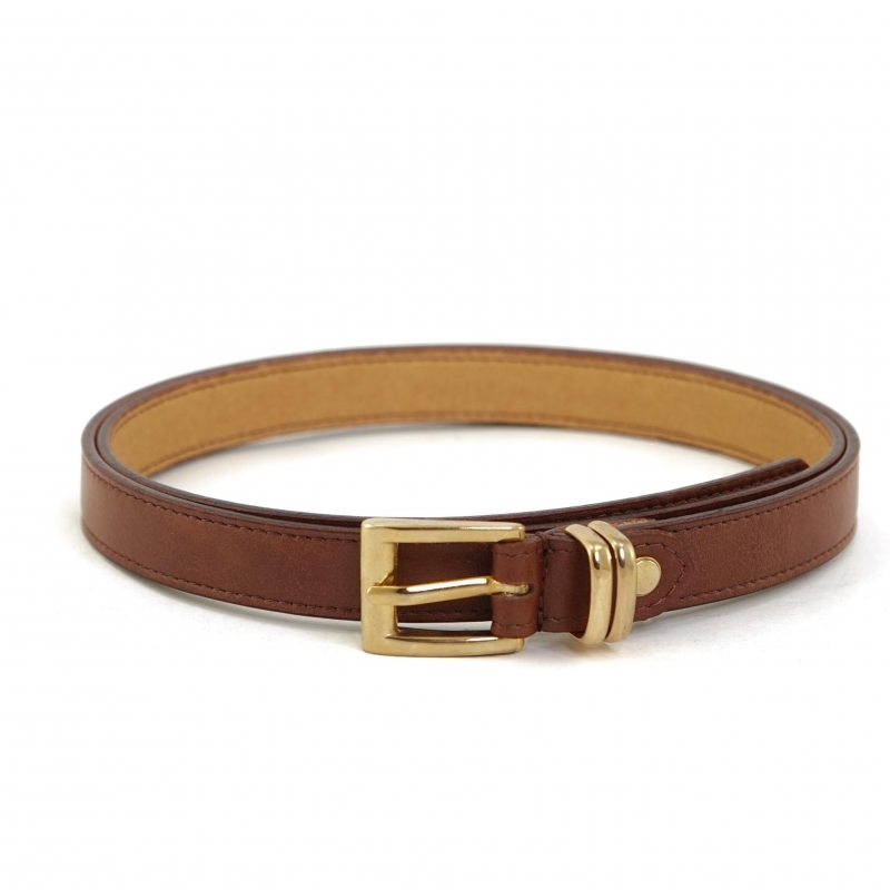Umweltfreundlicher dünner lederfarbener Gürtel mit goldener Schnalle und doppelter Metallschlaufe