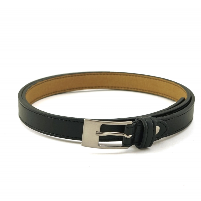 Dünner schwarzer umweltfreundlicher Gürtel mit silberner rechteckiger Schnalle