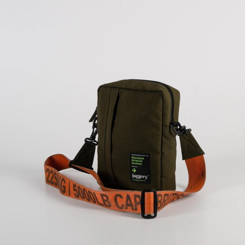 Recycelte Umhängetasche mit abnehmbarem und verstellbarem Schultergurt im Cargo-Gürtel