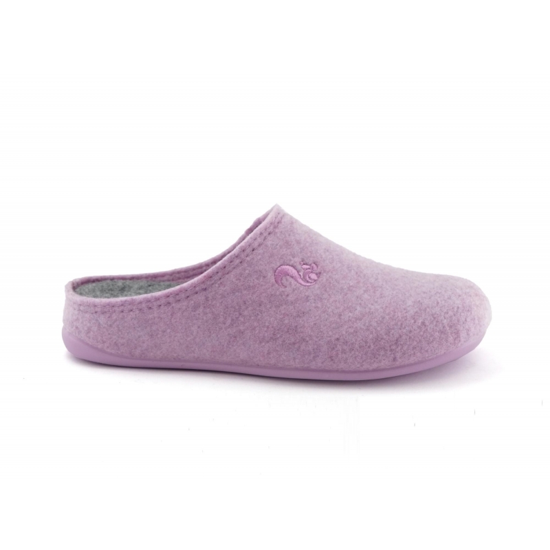 Mit abgerundeter Zehenpartie und aufgesticktem Eichhörnchen-Logo
