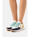 Wasserabweisendes Modell mit hellblauen Schnürsenkeln und rosa Fersenlasche