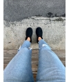 Schwarzer klobiger Stiefel mit gepolstertem Knöchel