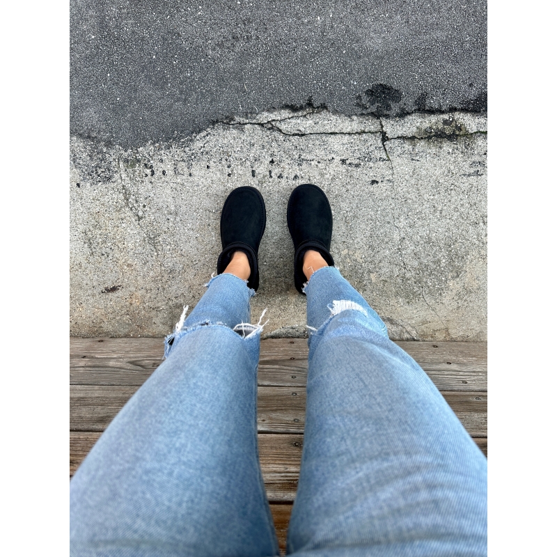Niedrige Slip-On-Stiefel mit Keilabsatz und runder Spitze