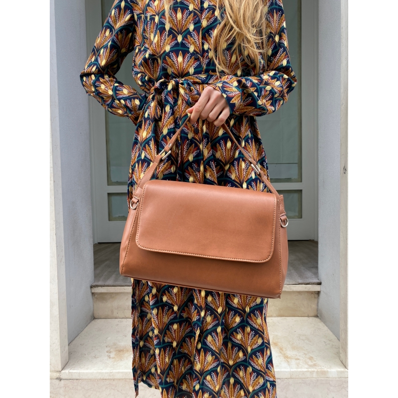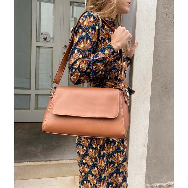 Umweltfreundliche vegane Tasche aus braunem Leder in Apfelfarbe