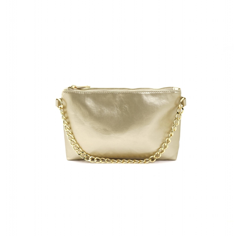 Vegane Clutch-Tasche für Zeremonien mit Reissverschluss und Goldkette