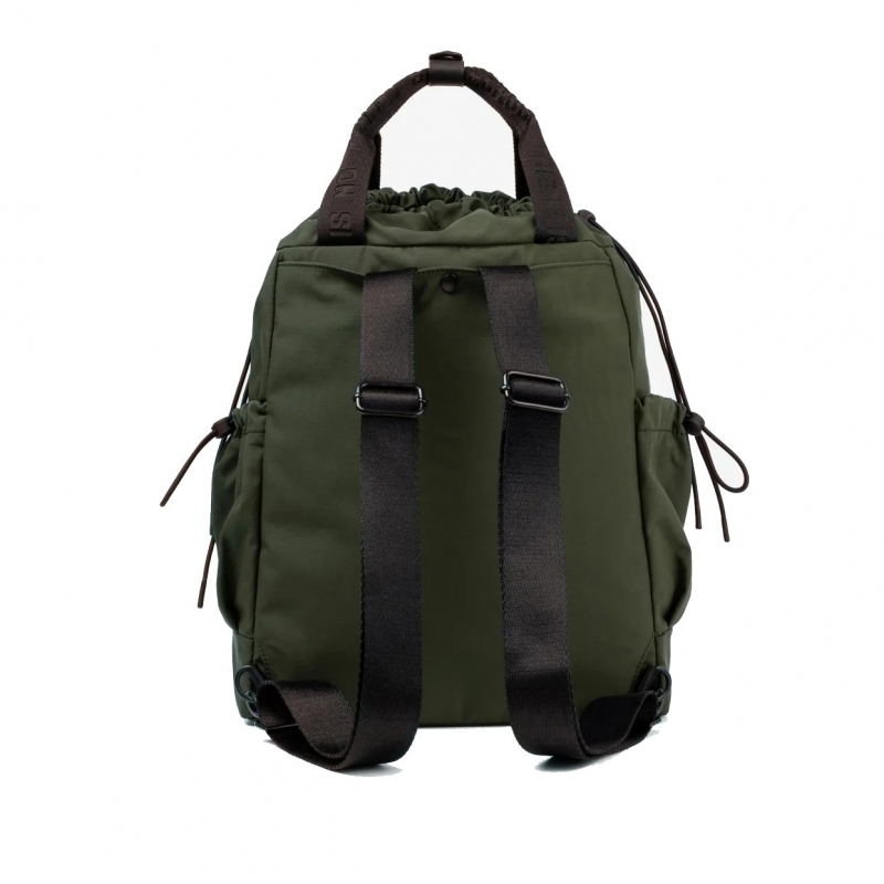Vertikale Vordertasche mit Reissverschluss und Seitentaschen mit Kordelzug