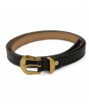 Model with engraved western style buckle and a worked gold-colored loop