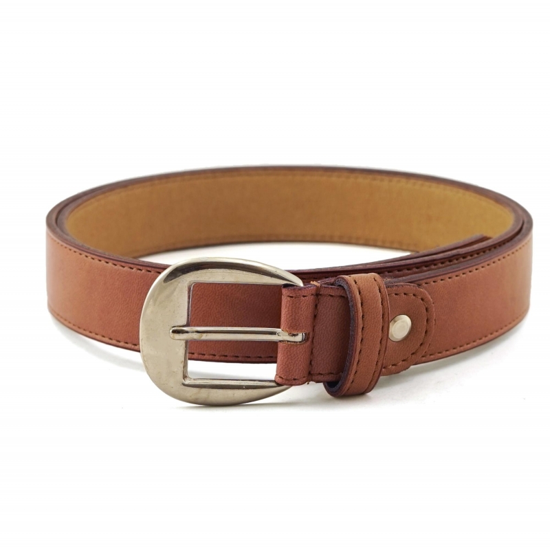 Eco-friendly leather-dyed belt with rounded silver buckle