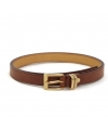 Eco-friendly thin leather-colored belt with gold buckle and double metal loop