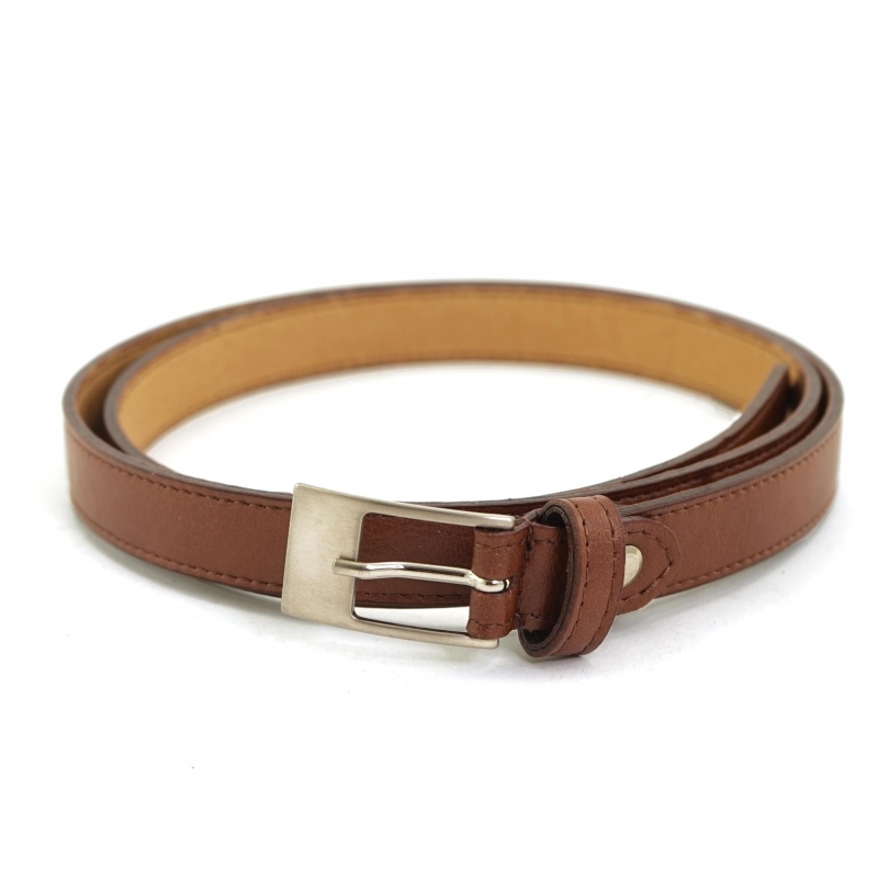 Eco-friendly thin leather-dyed belt with silver buckle