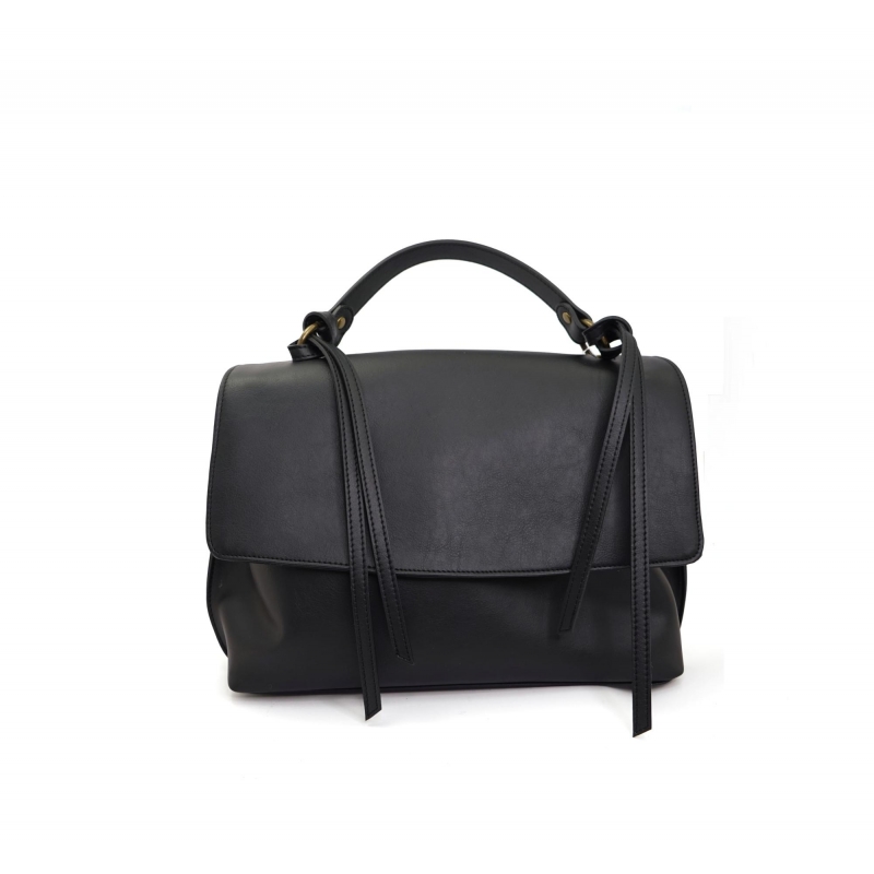 Women's black handbag with removable fringe detail