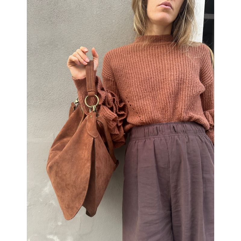 Upper in soft suede-effect microfibre in a leather colour
