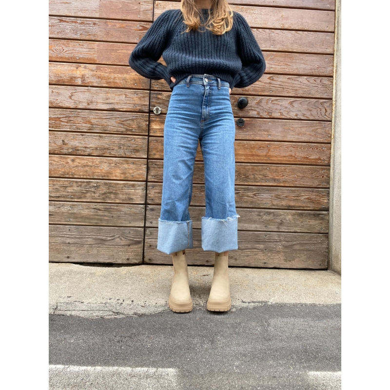 Waterproof model with lug sole and side elastic bands to facilitate the fit