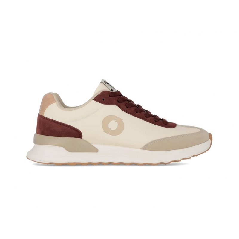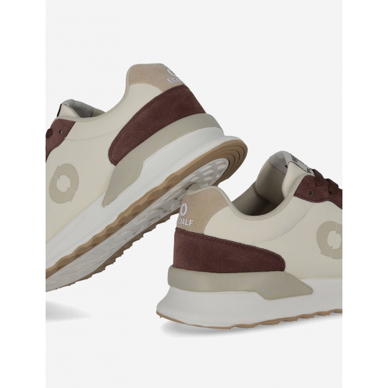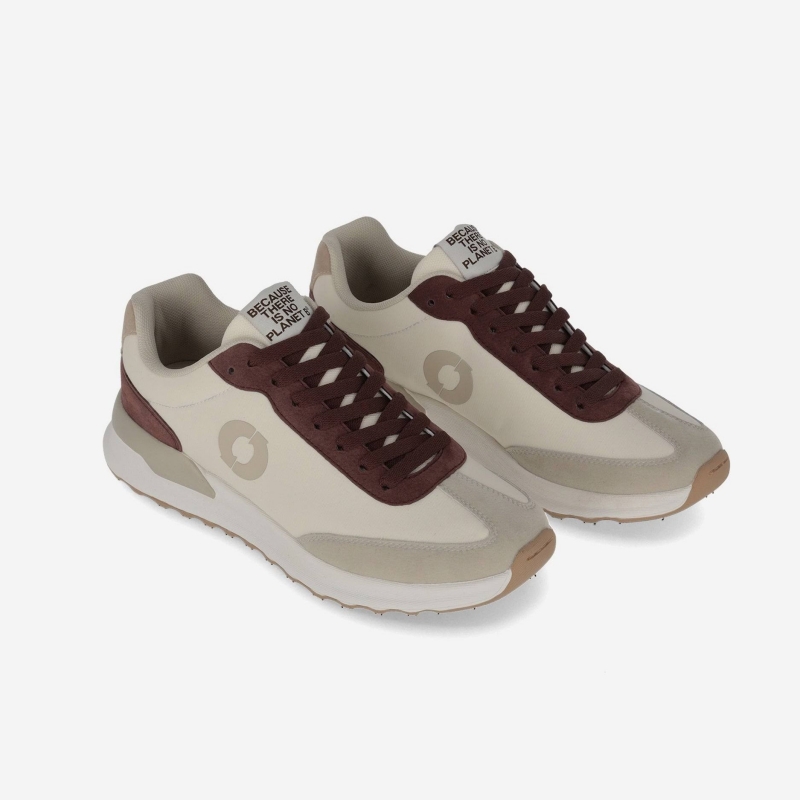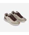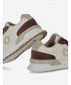 Water resistant lace-up model with beige, gray and brown colored inserts