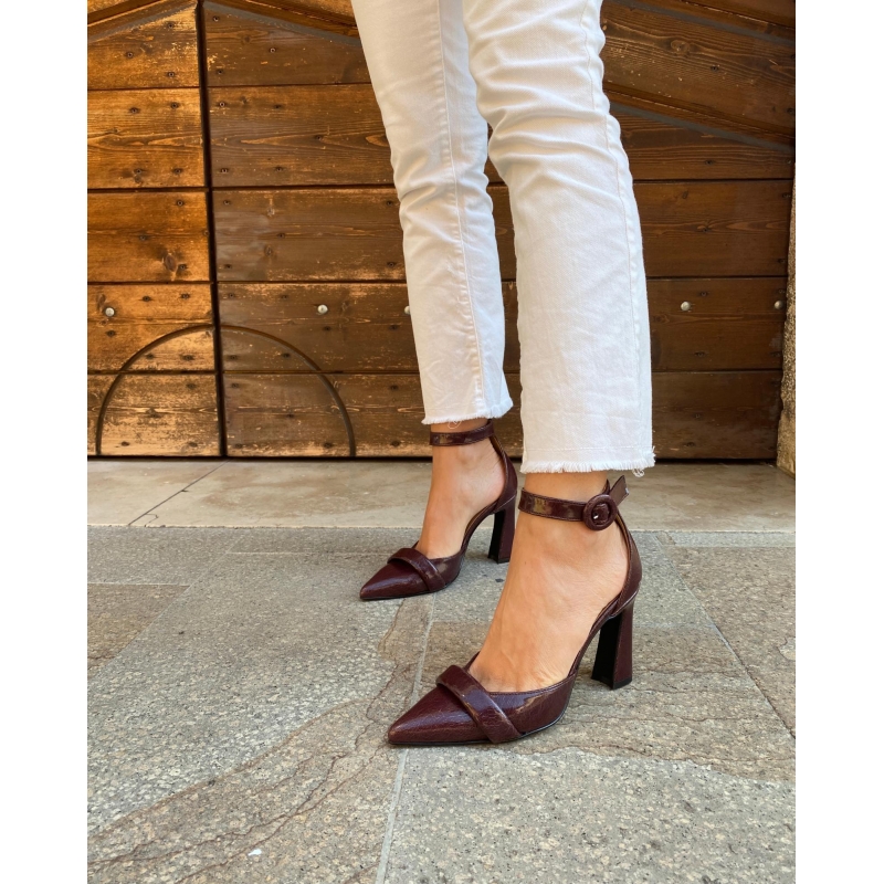 Model with closed heel and ankle strap to adjust the fit