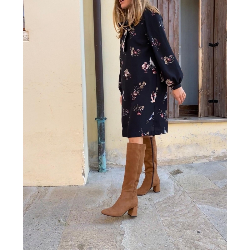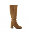 Brown tubular vegan boot below the knee
