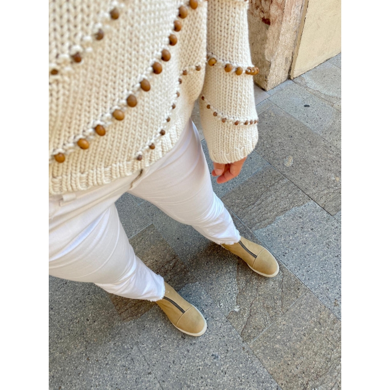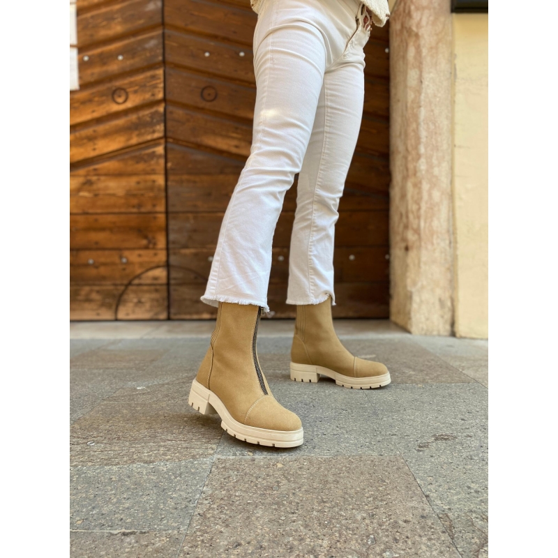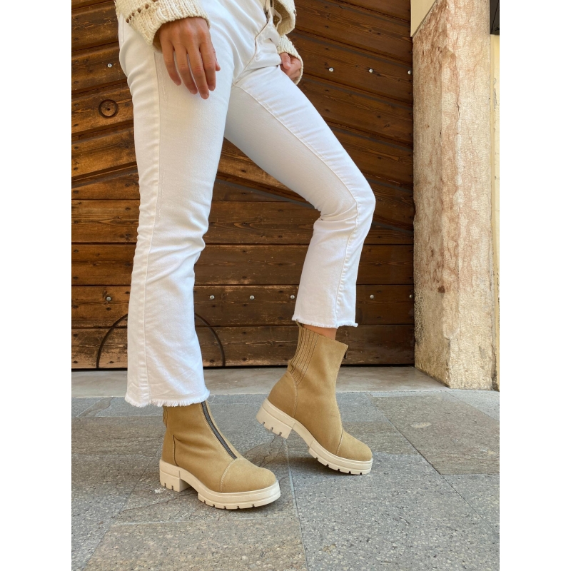 Upper in soft beige Microfiber with split effect certified OEKO TEX STANDARD 100