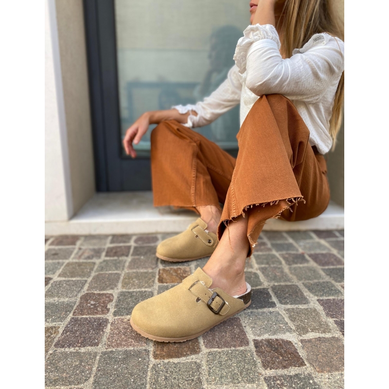 Furry vegan beige winter slippers