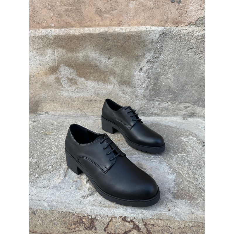 Women's vegan lace-up shoes, classic black shoes with heels