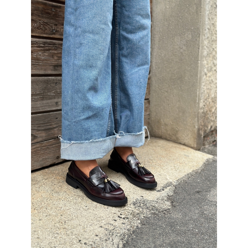 Shiny red vegan moccasin