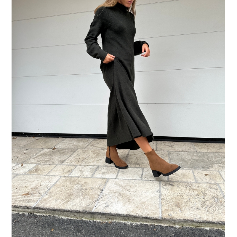 Model with heel and side zip, water resistant