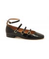 Model with square toe, triple strap on the instep and ankle strap