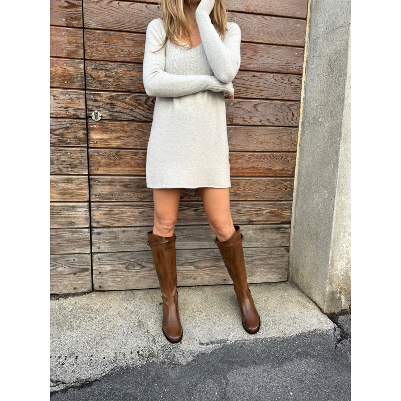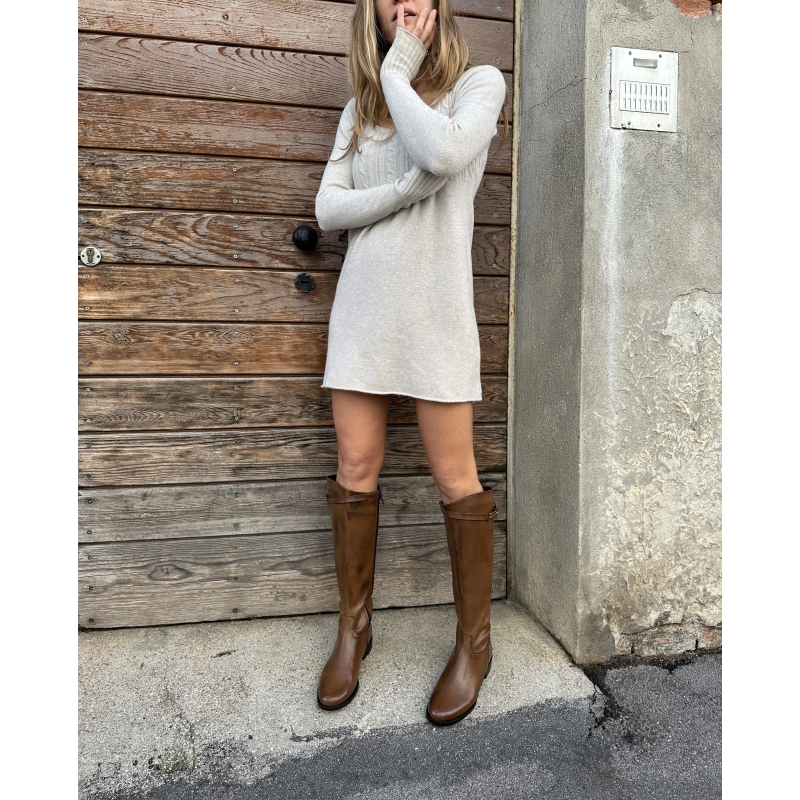 Simple and elegant tube boot with zip and adjustable strap with golden buckle