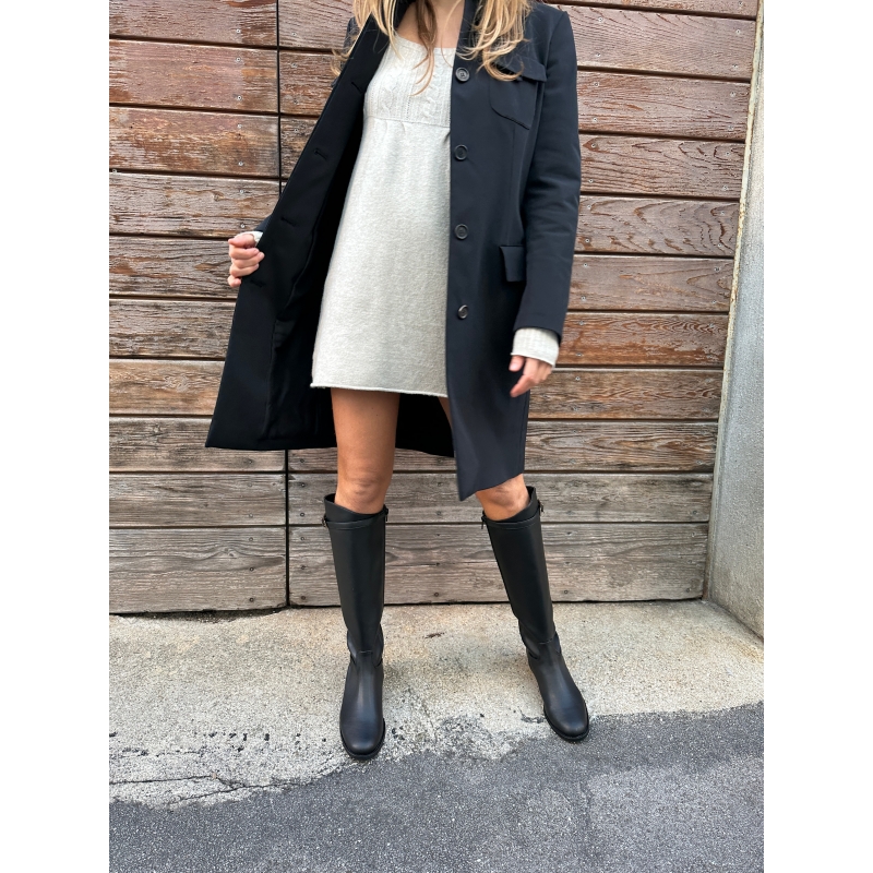 Simple and elegant tube boot below the knee with zip and adjustable strap with golden buckle