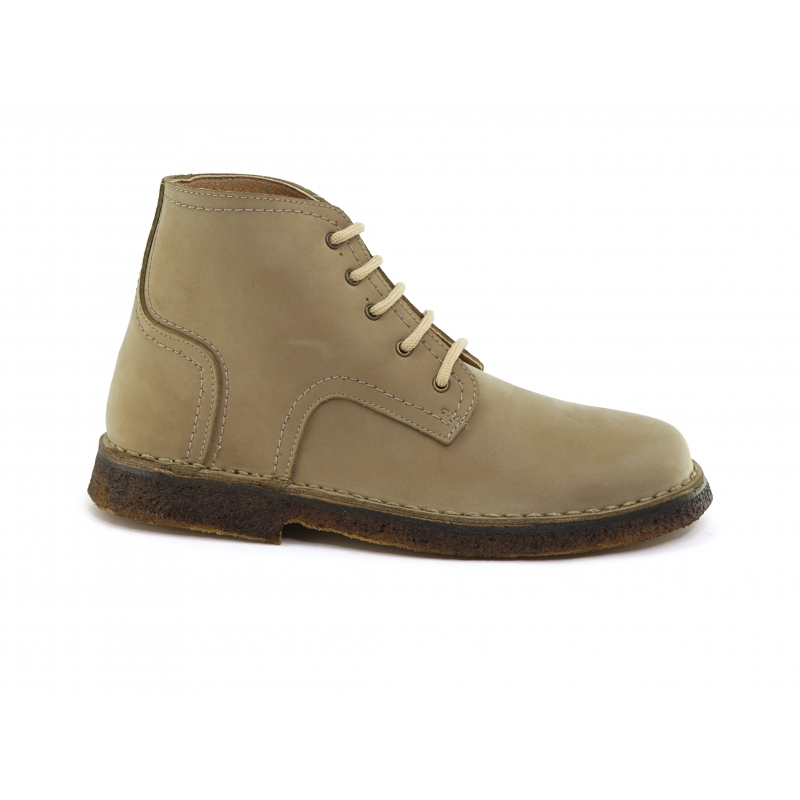 Unisex vegan ankle boot in beige with laces