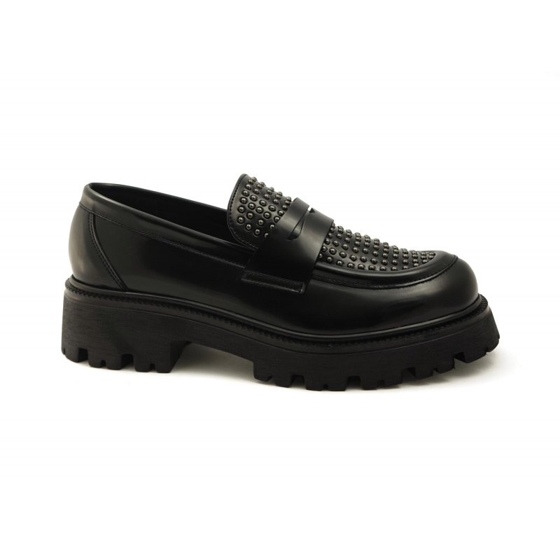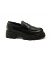 Black shiny vegan loafer with thick sole